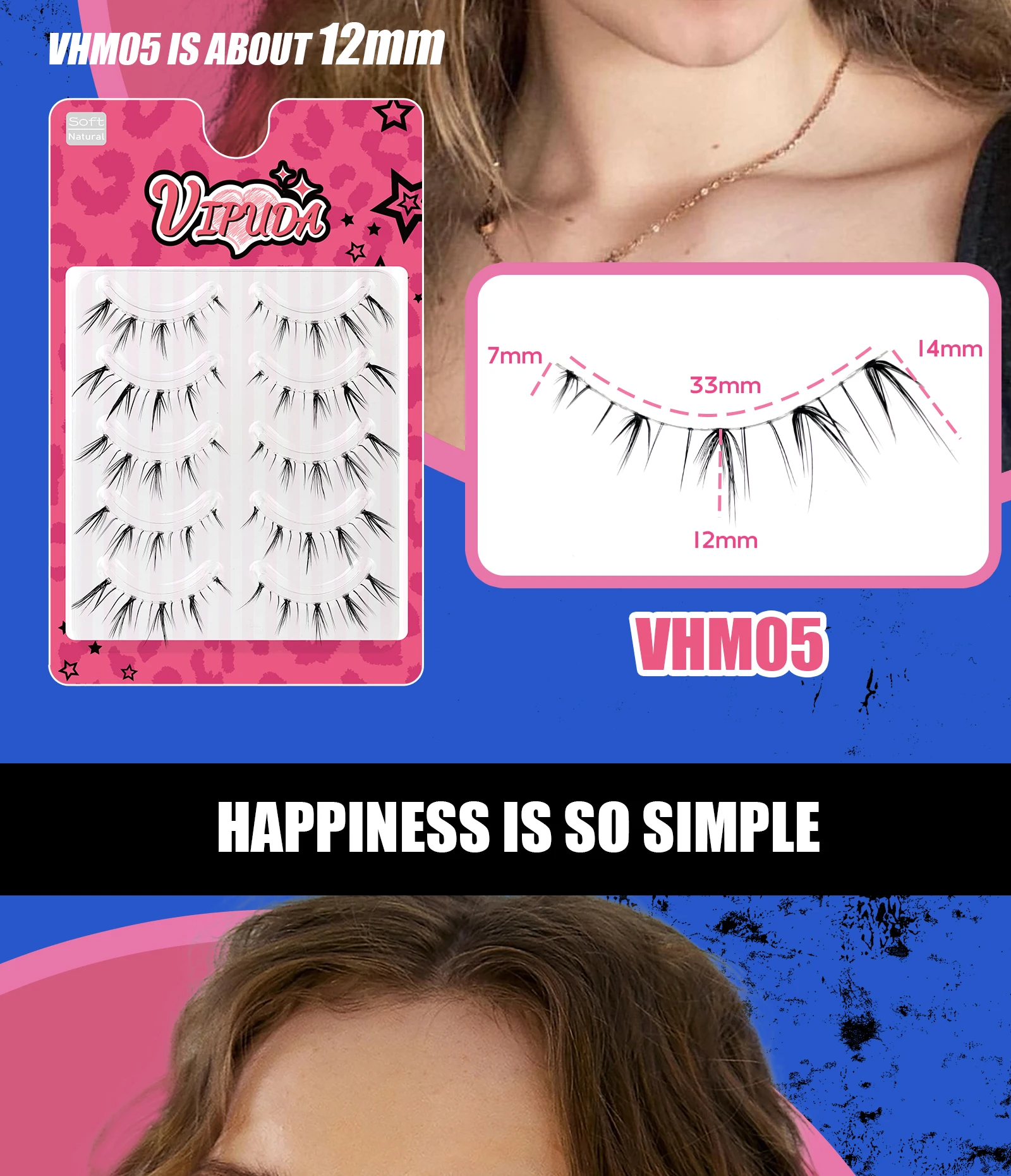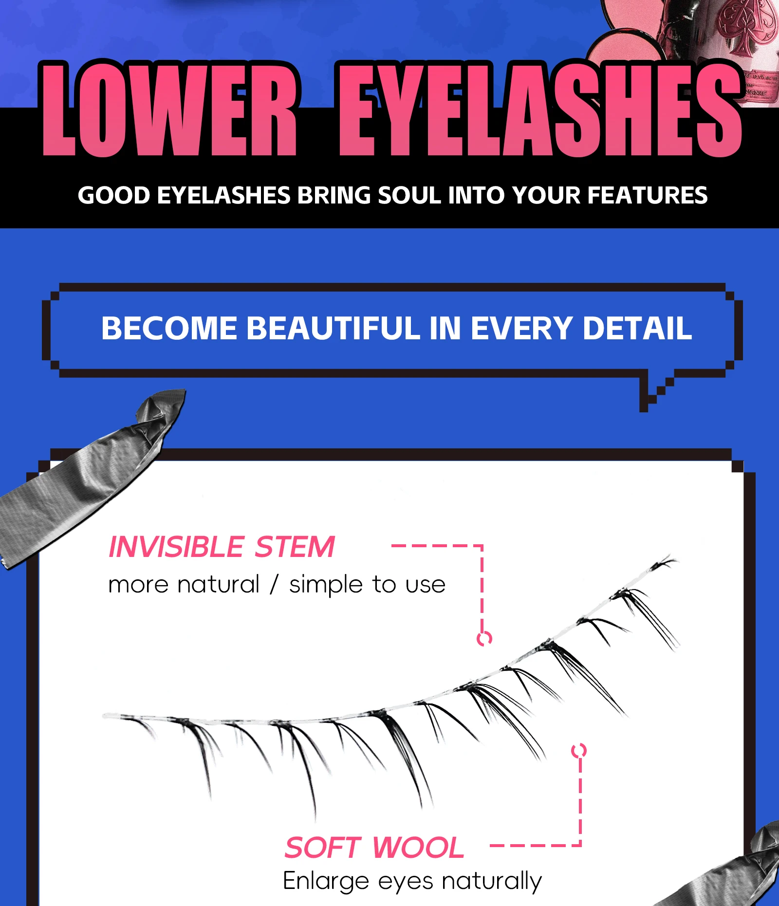 Lower Lashes 5 Pairs Clear Band Bottom Lashes Natural Wispy Handmade under Eye Lashes Extensions Soft Fake Lashes Pack